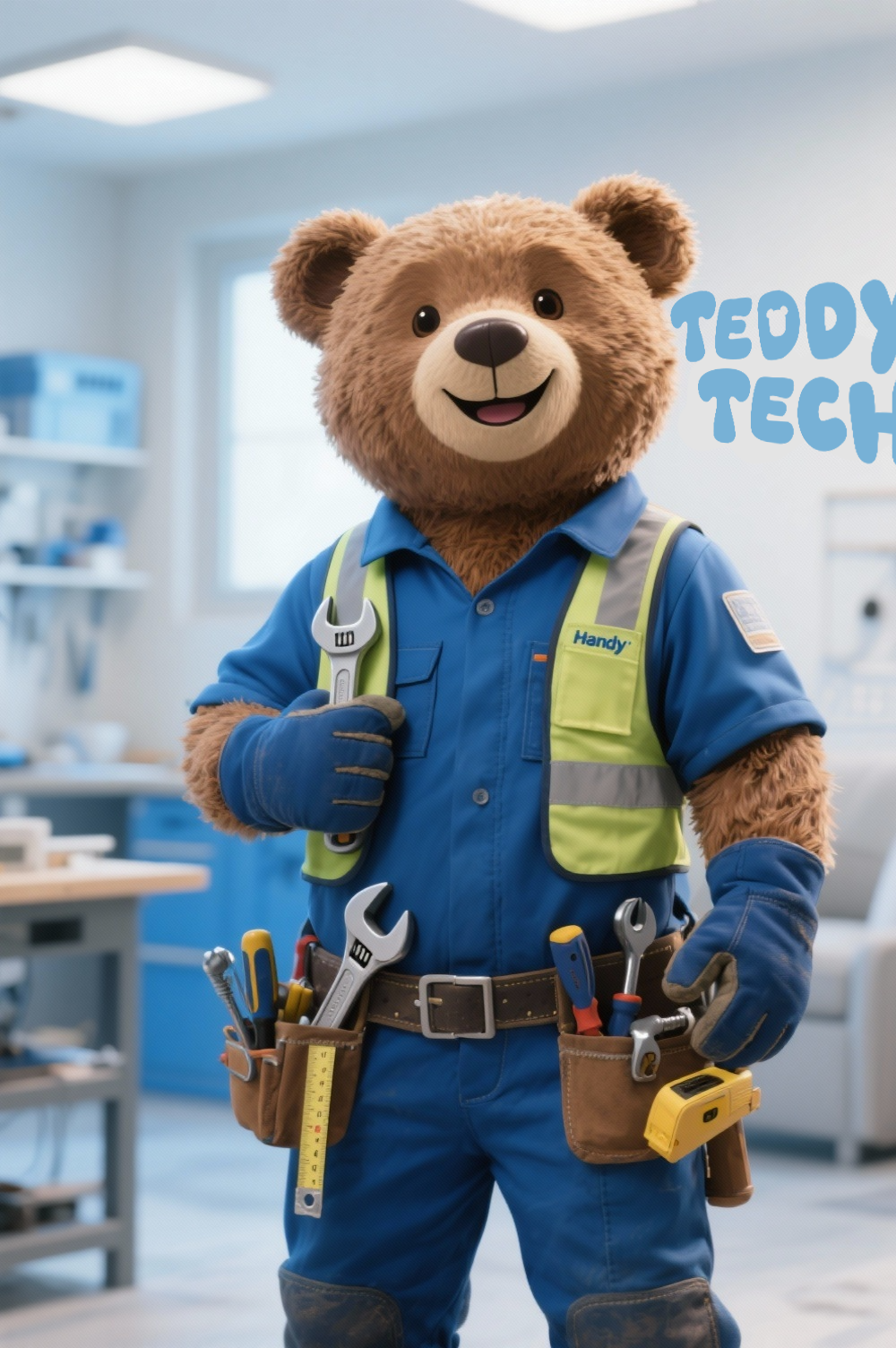 Handy is the friendly mascot of Teddy Tech, a skilled technical services expert dedicated to helping homeowners with repairs, improvements, and regular maintenance. Always reliable and ready to lend a hand, Handy ensures your home stays safe, functional, and comfortable